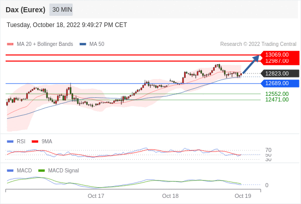德国DAX指数期货 (Eurex)? 当日内: 看涨,当 12689.00 为支撑位,目标定在13069.00。