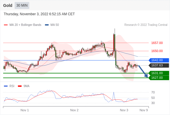 在 1642.00 之下,看跌,目标价位为 1631.00 ,然后为 1627.00 。