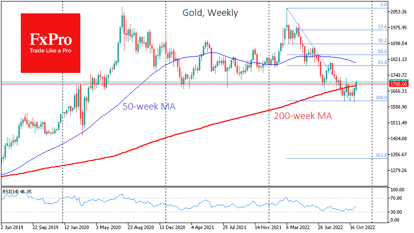 支持金价上涨的基本因素之一是各国央行增加了黄金购买量,上季度央行购买的黄金数量达到了20世纪80年代以来的最高水平。 在价格下跌的情况下,说服央行购买债券在战术上是困难的,发达国家的央行一个接一个地表示,他们还没有结束加息,这表明债券价格将面临进一步的压力。 与此同时,总体风险偏好有所上升,因为预计随后将小幅加息,这引发了对更便宜黄金的关注。