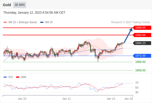 在 1872.00 之上,看涨,目标价位为 1892.00 ,然后为 1899.00 。