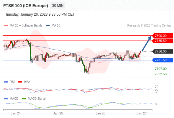 英国富时100指数期货 当日内: 看涨,当 7731.50 为支撑位。