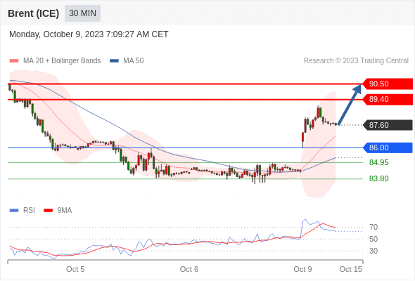 在 86.00 之上,看涨,目标价位为 89.40 ,然后为 90.50 。