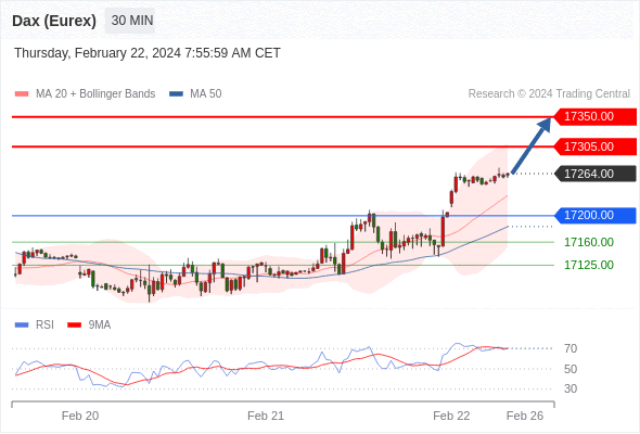 在 17200.00 之上,看涨,目标价位为 17305.00 ,然后为 17350.00 。