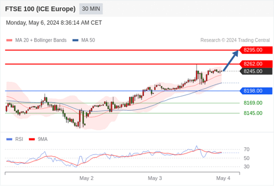 在 8198.00 之上,看涨,目标价位为 8262.00 ,然后为 8295.00 。