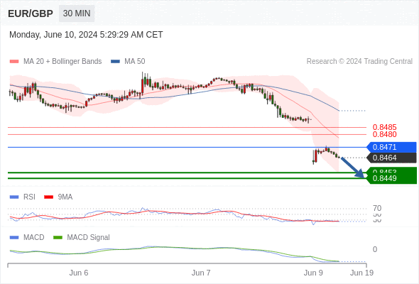 欧元/英镑 当日内: 看跌,在 0.8471 之下。