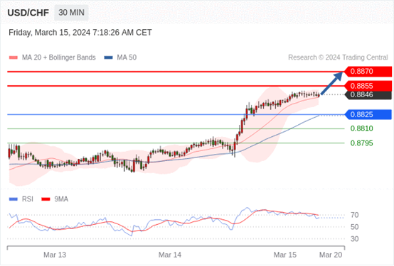 美元/瑞郎 当日内: 在0.8950之上,看涨。