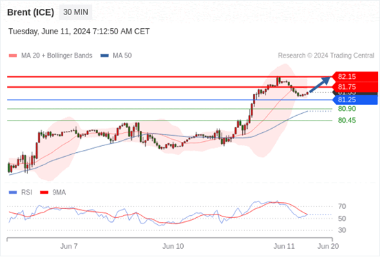 在 81.25 之上,看涨,目标价位为 81.75 ,然后为 82.15 。