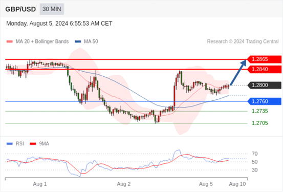 在 1.2760 之上,看涨,目标价位为 1.2840 ,然后为 1.2865 。