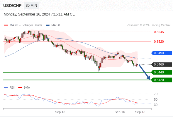 在 0.8490 之下,看跌,目标价位为 0.8440 ,然后为 0.8420 。