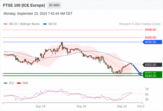 在 8430.00 之下,看跌,目标价位为 8253.00 ,然后为 8240.00 。