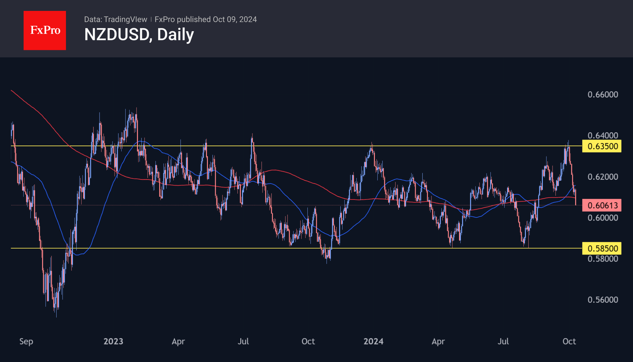 新西兰储备银行在8月份下调了25个基点后,将基准利率下调了50个基点至4.75%。新西兰央行在解释其决定时指出,通货膨胀率接近2%,是1-3%目标区间的中点。因此,通货膨胀正在远离人们的关注。与此同时,经济活动被抑制,部分原因归结于限制性的货币政策。