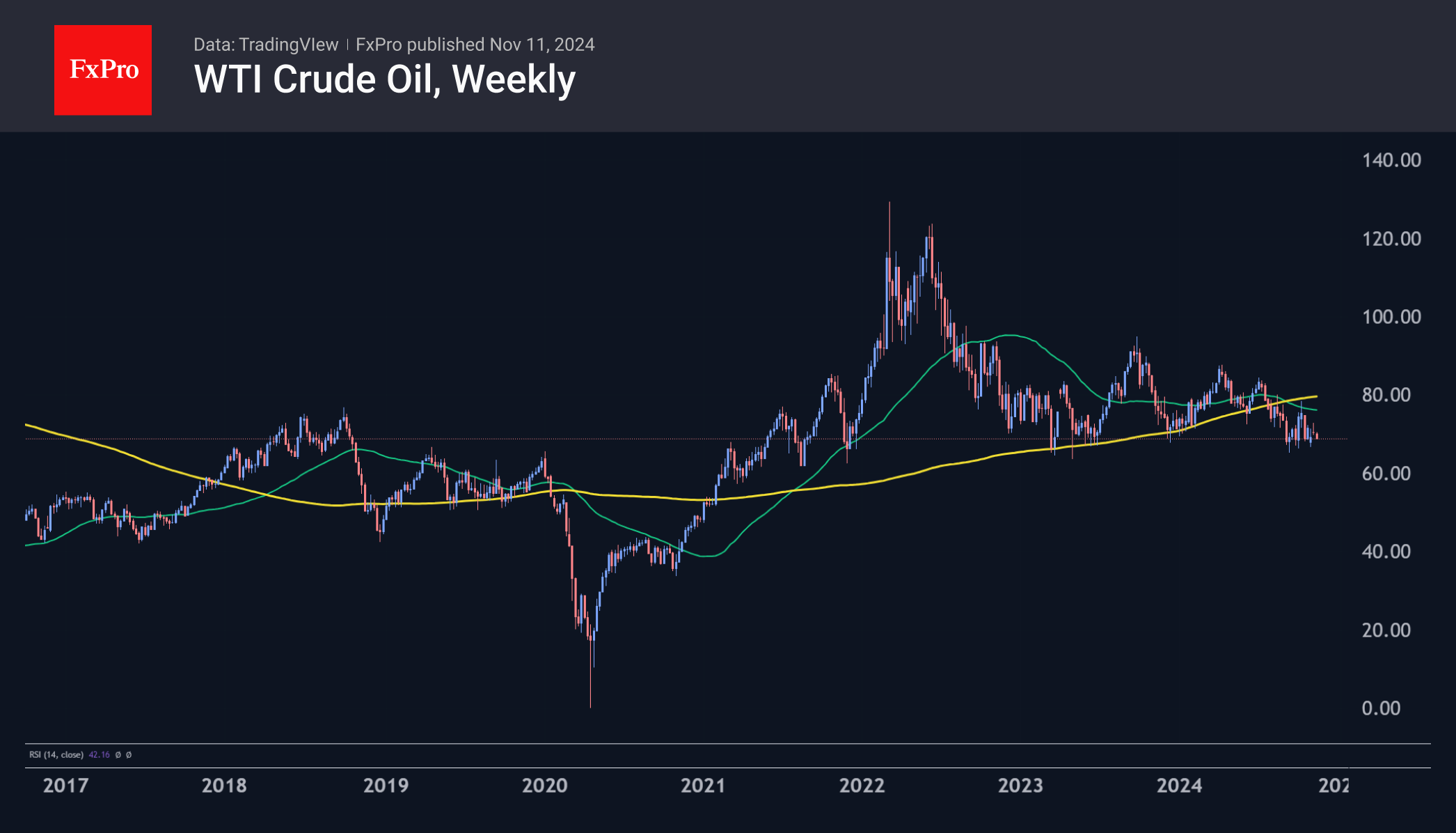 自周一开始,每桶原油价格已下跌1.6%,这使得过去两个交易日的累计跌幅达到4%。油价面临的压力包括以色列和黎巴嫩之间停火谈判释放出的信号(降低供应风险),以及对中国经济刺激计划规模的失望(修正预期需求)。