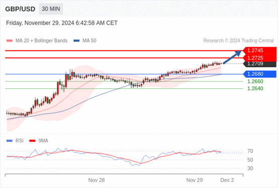 在 1.2680 之上,看涨,目标价位为 1.2725 ,然后为 1.2745 。