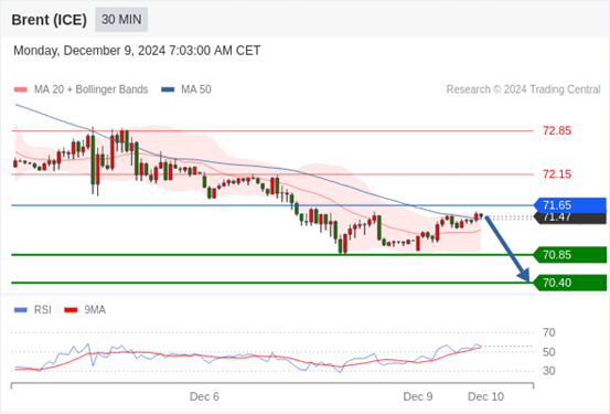 在 71.65 之下,看跌,目标价位为 70.85 ,然后为 70.40 。