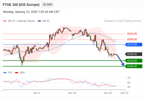 在 8272.00 之下,看跌,目标价位为 8215.00 ,然后为 8195.00 。