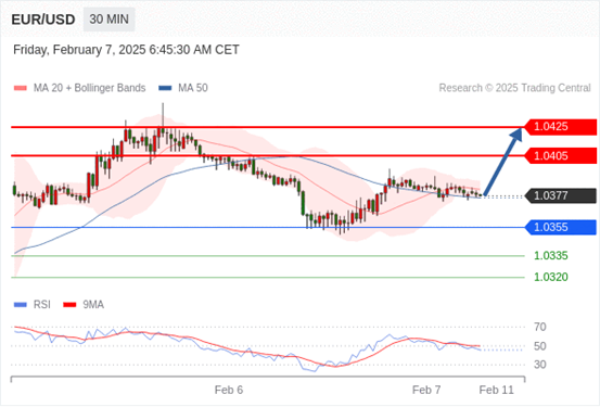 在 1.0355 之上,看涨,目标价位为 1.0405 ,然后为 1.0425 。