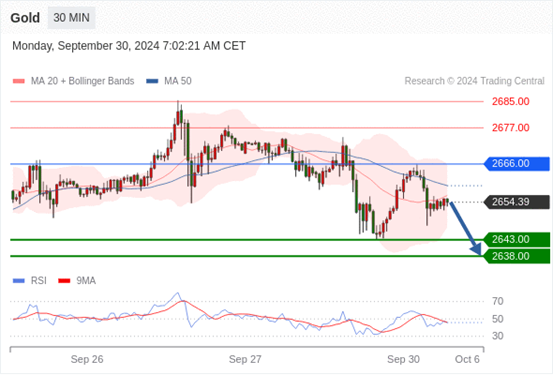 查看交易中心全球研究部门今日的市场观点。从受欢迎的交易产品中探索新的交易方法与机会。 欧元/美元黄金现货英镑/美元欧元/日元欧元/英镑美元/瑞郎德国DAX指数期货(urx)布伦特原油(IC)英国富时100指数期货 黄金现货当日内:存在压力。 转折点: 2666.00 交易策略: 在2666.00之下,看跌,目标价位为2643.00,然后为2