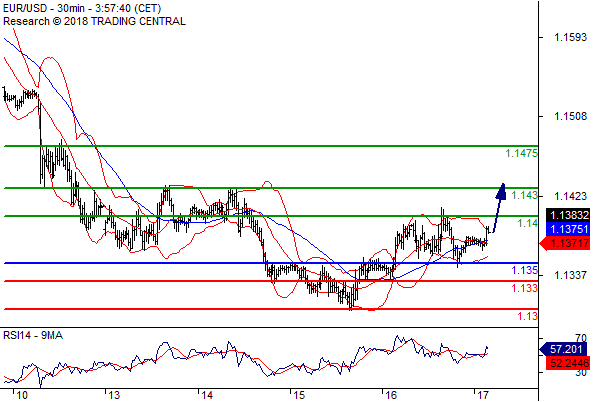 交易策略: 在 1.1350 之上,看涨,目标价位为 1.1400 ,然后为 1.1430 。