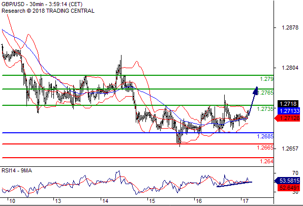 交易策略:在 1.2685之上,看涨,目标价位为 1.2735 ,然后为1.2765。