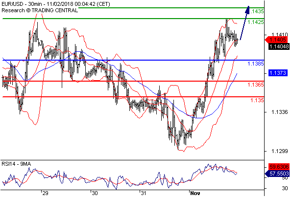 交易策略: 在 1.1385之上,看涨,目标价位为 1.1425,然后为 1.1435。