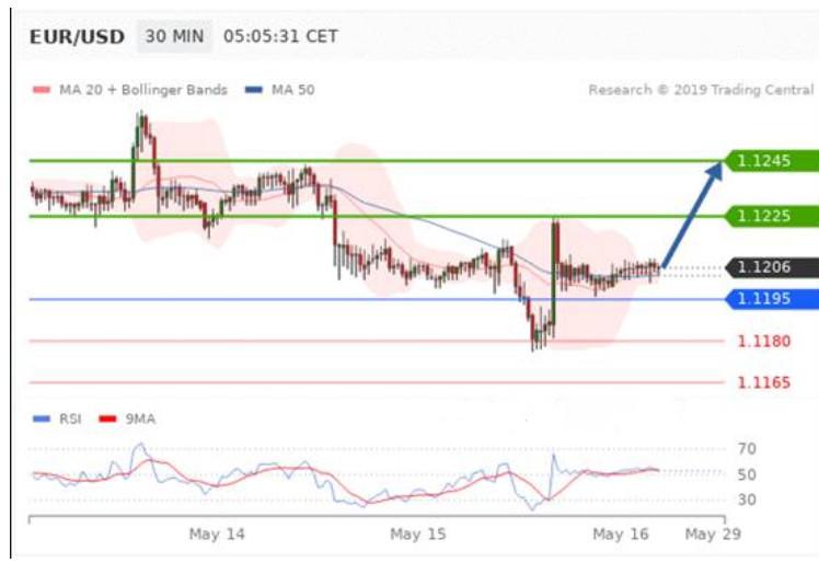 交易策略:在1.1195之上,看涨,目标价位为1.1225,然后为1.1245。