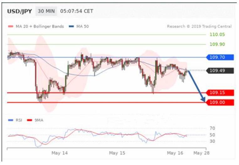交易策略:在109.70之下,看跌,目标价位为109.15,然后为109.00。