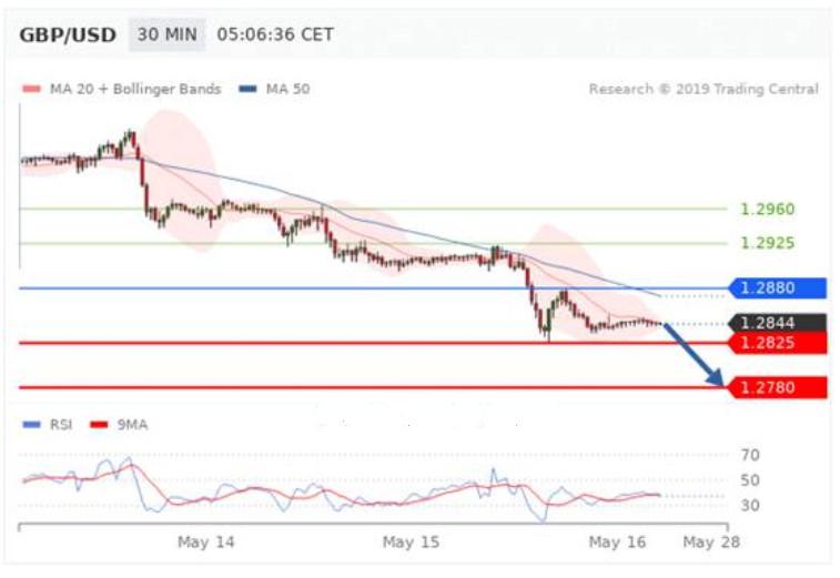 交易策略:在1.2880之下,看跌,目标价位为1.2825,然后为1.2780。