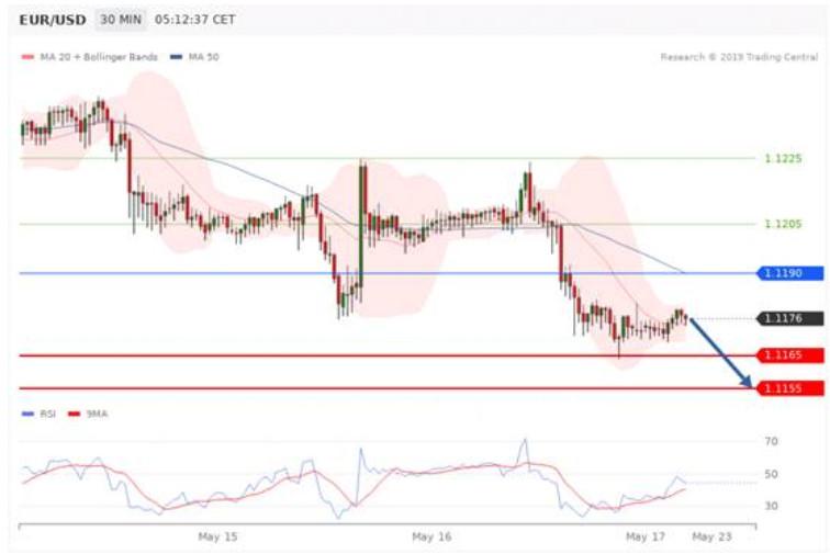 交易策略:在1.1190之下,看跌,目标价位为1.1165,然后为1.1155。