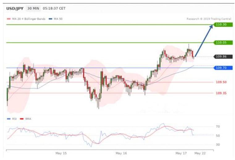 交易策略:在109.70之上,看涨,目标价位为110.05,然后为110.30。