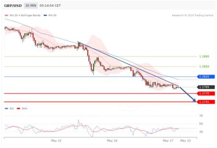 交易策略:在1.2820之下,看跌,目标价位为1.2770,然后为1.2745。