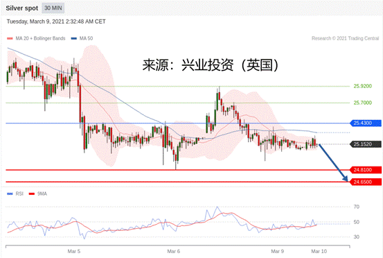 交易策略:在25.43之下,看跌,目标价位为24.81,然后为24.65。