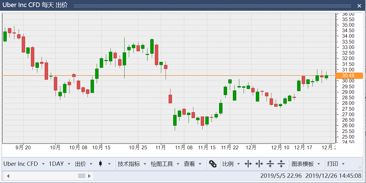 在股价上,我们认为Uber仍有望进一步下行。其目前阻力位在33.8美元,如果能向上突破该价格,才能说明股价进入到强势区,否则均属于弱势区域。而自11月6日股价开启了反弹,在将近2个月的时间内,股价仍只能反弹到33.8附近,足见其买盘匮乏,市场信心缺失。我们认为在33.8美元以下,Uber仍有看空的机会,甚至有望再度创出历史新低。