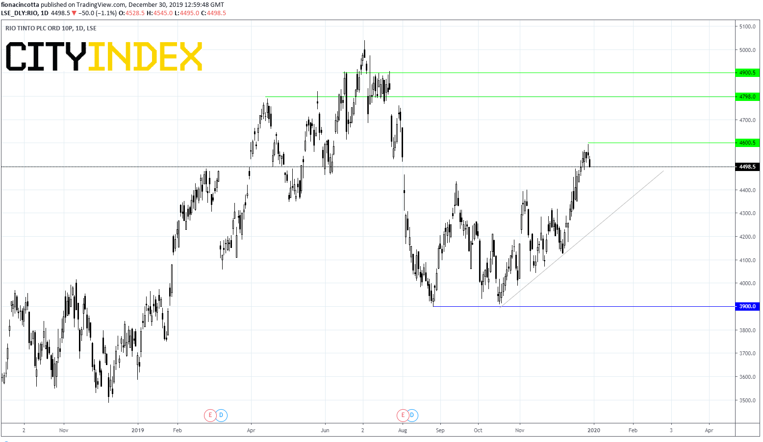 力拓集团股价2019年有望收高27%,跑赢FTSE100指数,后者上涨12%。由于美中阶段1贸易协议有可能在2020年年初签署,力拓集团的股价有扩大上行的潜力。