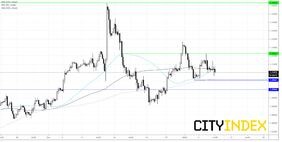 4小时图上,英镑/美元缺少上涨动力,受制于1.32整数关口和50周期简单移动均线,并且考验1.31支撑位。如果攻克此位,后市可能考验1.3055并下看1.30。如果站上1.3212,后市则为看涨。