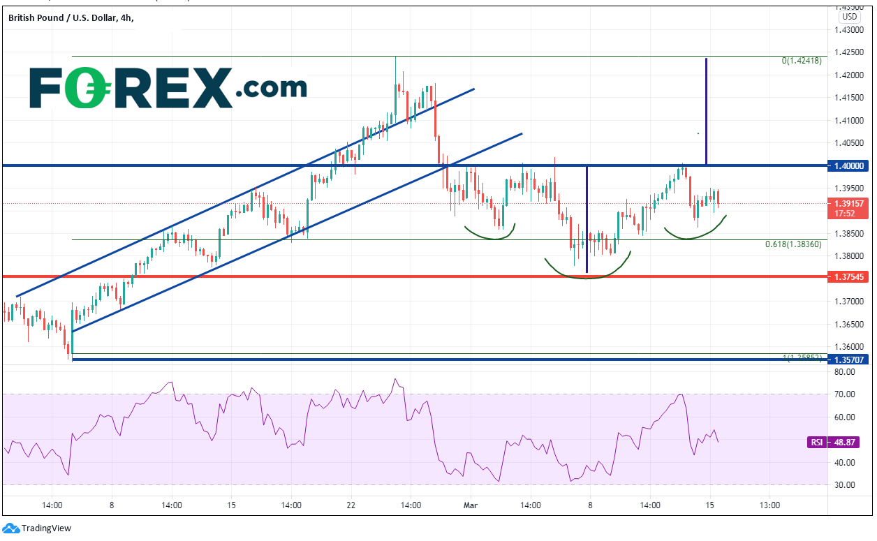 本周硬币的另一面是FOMC会议。美联储主席鲍威尔一直毫不掩饰自己在货币政策方面的姿态,即通胀预期是暂时性的,殖利率的上涨不可持续。因此,市场预测美联储这次维持利率不变、保持每月债券购买规模在1200亿美元不变。美联储方面最近也有猜测认为,随着拜登1.9万亿美元财政刺激政策的通过,通胀可能出现(这正是债券市场一个月来所表达的观点)。这或许促使FOMC部分成员将其通胀预测的时机提前,但目前来看鲍威尔在货币政策方面可能“按兵不动”。另外,疫苗仍在投放,单周六就接种了300余剂。这有望提升对经济复苏的乐观预期(也正是美联储所说的加息的理由)。完整的FOMC前瞻,请单击此处阅读Matt Weller的观点。