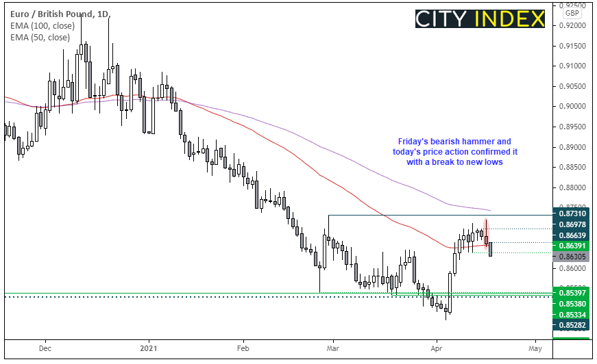 理想情况下,我们希望日收盘于0.8639之下。若重回该水平之上,表明空头陷阱已经出现。