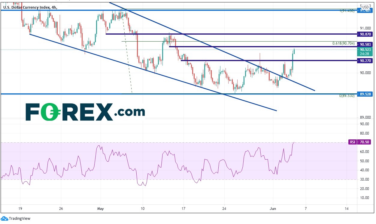 我们还需关注平均每小时收入数字。在通胀数据最近上升的背景下,美联储在采取行动之前需要确认通胀正渗入就业数据。美联储始终表示,希望看到一连数月改善的劳动力市场数据,其中包括薪资增加。对5月平均每小时收入的预期值为增加0.2%。