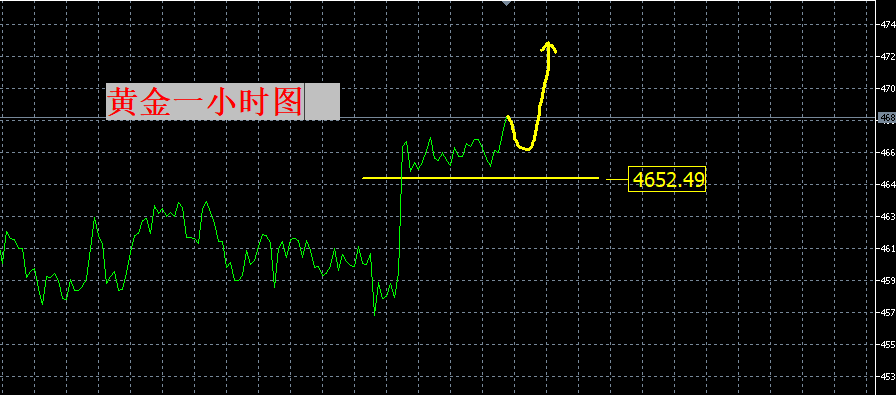 黄金早盘昨天避险高开高走之后,黄金随后开始了窄幅震荡,整体波动不大,也因为昨天美盘提前休市,行情相当较小,不过这并不是说黄金涨不动了,目前只是蓄势阶段,黄金早盘现价4662直接多,随时可能向上突破。 黄金1小时均线还是金叉向上的多头排列,黄金昨天横盘之后基本上企稳在4650上方,那么黄金短线在4650
