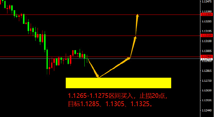 1.1265-1.1275区间买入,止损20点,目标1.1285、1.1305、1.1325。