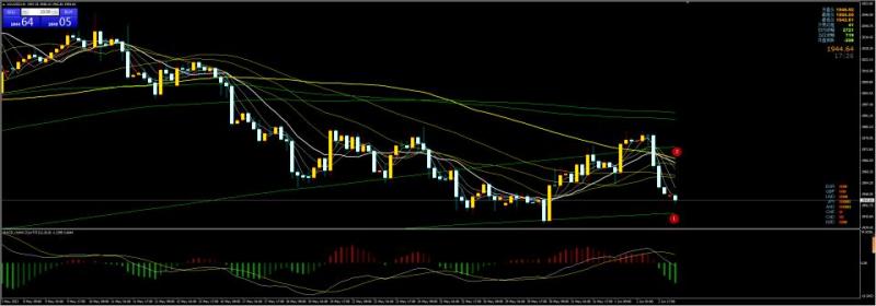 通过对黄金4小时图解析得知,上一个交易日受非农数据影响行情直接一路下跌回落到目前现在的位置,在是一个交易日当中就已经说过上方已经接近3号120日均线的压力位附近相对而言也是有一定的压制作用的,星期五晚间再次放量跌破1957一线(1号均线)支撑目前反过来已经成为压力,短期下方我们继续重点关注前期启动突破位1939