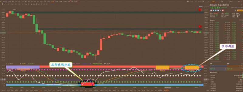 通过对黄金小时图解析得知,黄金从昨日到目前为止一直都是在高位窄幅震荡调整走势,我们从下方的附图可以清楚的看到前期在底部区域机构不断地增仓介入并且出现抄底信号形成了一波反弹动作目前在高位1号压力位处于强势调整状态并且出现了减仓出逃信号说明短期有调整需求,下方我们重点关注早盘所说的支撑即可,短期在操作