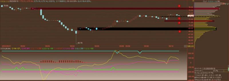 通过对原油小时图解析得知,上一个交易日继续延续反弹动作,自从在下方出现绝地反击动作以来行情一路震荡上行,星期五到达上方1号均线的压力位相对而言有所压制,我们从下方的ACD也可以清楚地看到多头动能有所减缓并且形成死叉说明反弹意愿即将结束但是不排除盘中手数据影响进一步的拉升突破到达上方2号均线压力位,短期