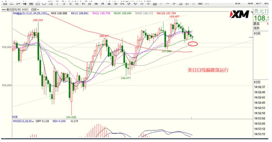 美日日线在一个上涨通道内震荡运行,日内有高抛低吸机会。