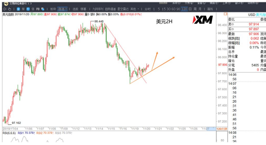 美元97.67支撑位上,97.80/97.75附近多,目标98/98.05