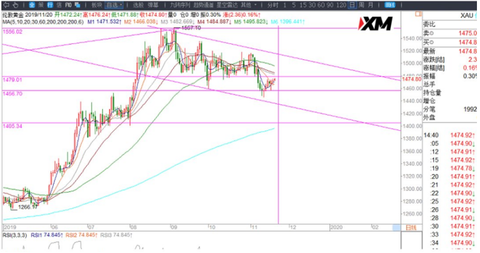 (2)黄金前方1479-1482一带强压制,无法上破前,日线都还是弱势震荡。