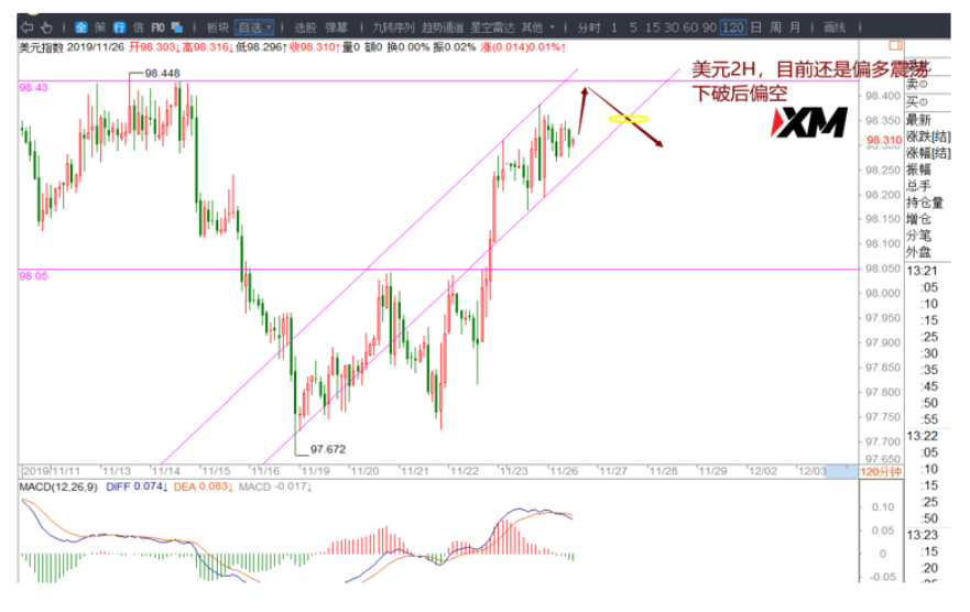 美元:昨日日线走势偏震荡,但依然收阳,短级别开始走楔形,关注日内会不会下破趋势线,未跌破前,依然保持日内偏低多交易的思路。