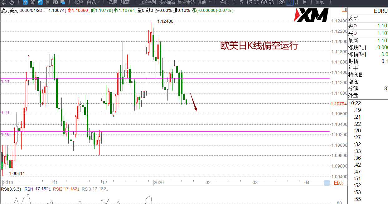 欧美在1.1120下方偏空运行,反弹1.1110/1.1120短空,止损1.1150,目标1.1075-1.1060