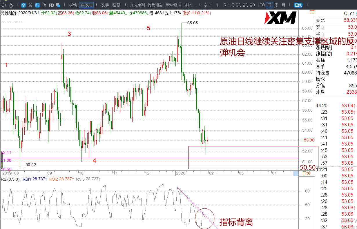 (2)原油关注52.13支撑上的反弹多机会。