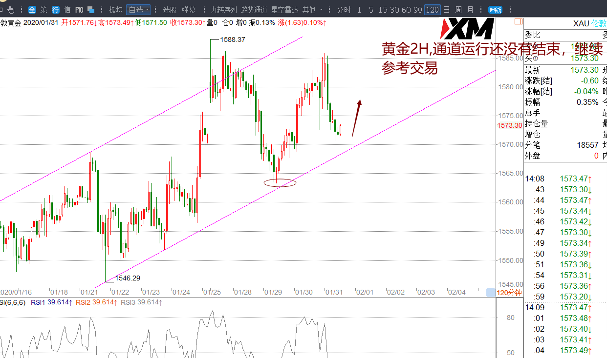 (2)黄金现在高位震荡,未有效突破1588前,震荡运行,日内可关注关键压制短空机会。