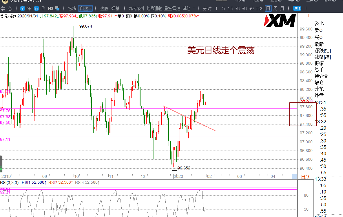 支撑位:97.73/97.68-97.60-97.50